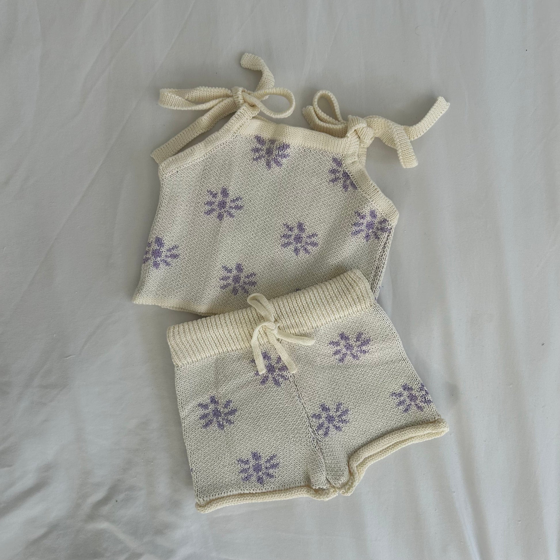 Our beautiful Posy set is made from 100% cotton and features a lilac floral print with tie shoulders. This set is a must have summer outfit for your little one.